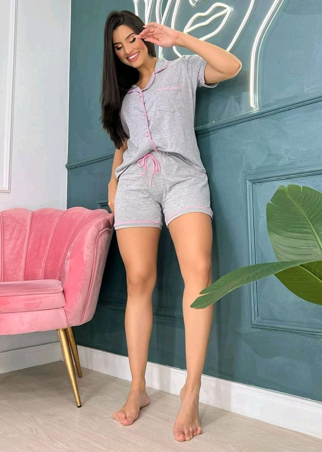Pijama americano Suede com bolso